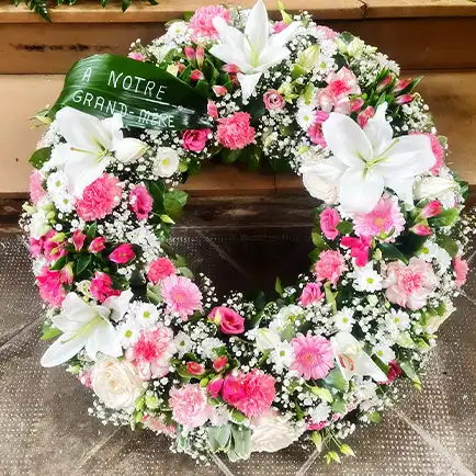 Symbole de la mémoire éternelle, nos couronnes funéraires sont conçues avec des fleurs délicates et respectueuses, pour honorer la mémoire de vos êtres chers avec élégance et sobriété.