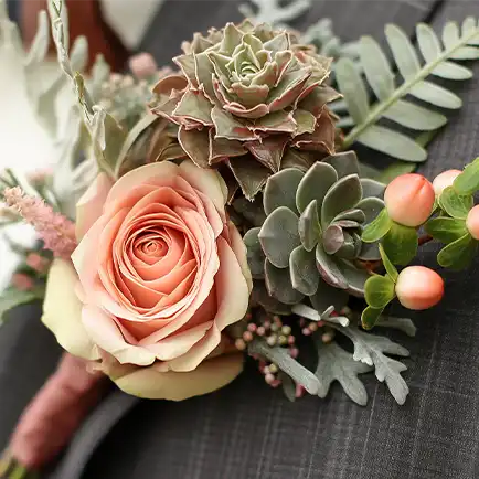 Les détails comptent, c'est pourquoi nous créons des boutonnières délicates et élégantes pour compléter le look de votre cortège avec subtilité et finesse.
