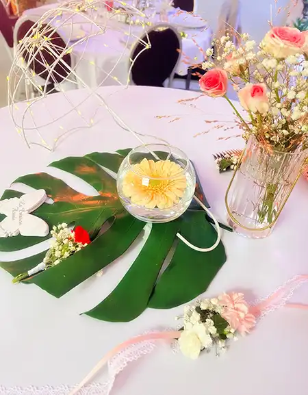 Élégants et raffinés, nos centres de table apportent une touche florale exquise à votre réception, créant une atmosphère chaleureuse et accueillante pour vos invités.